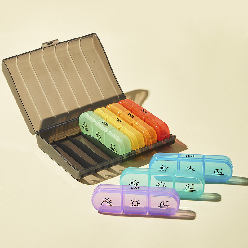 Adopt food grade material for health care or medical use safely, transparent dispenser organizer and AM/PM mark make users easy to distinguish.